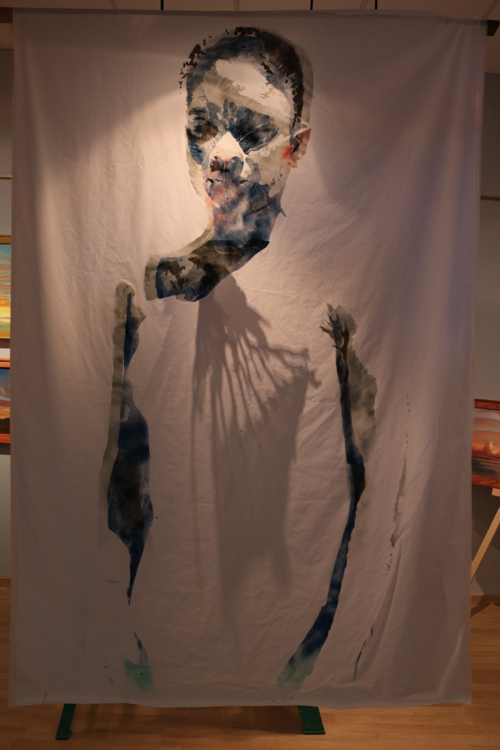 In an environment where art materials are less accessible, I focused on using materials that could be found locally. The sea fans are an organism of the reef that wash up on the beach when they die and detach from the reef. The material that makes up the pieces are sail cloth, typically used for the spinnaker, referencing our vital sailing community in the work. I use local faces and bodies in the work, again – contextualizing the materiality and visual references in our very specific place.